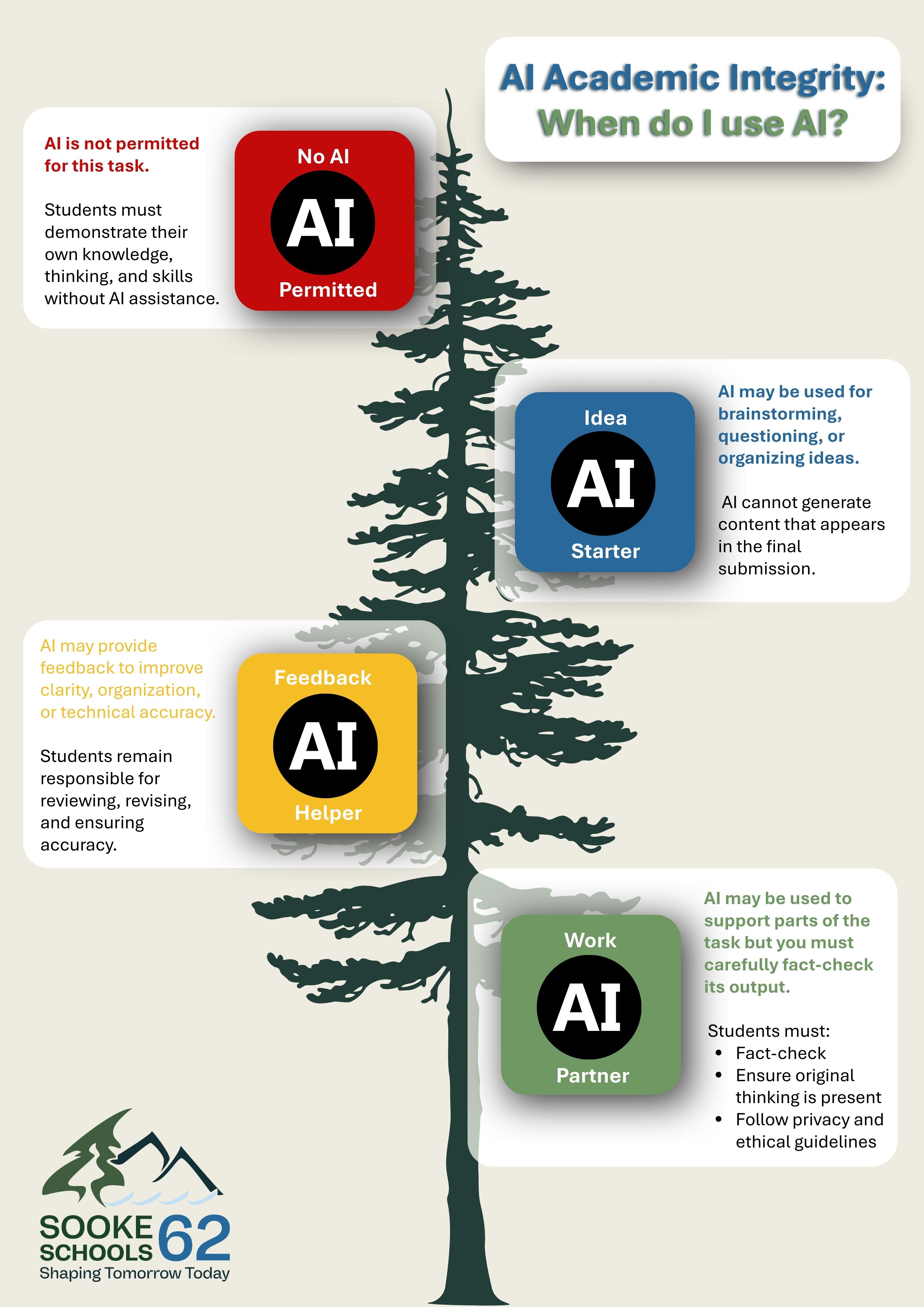 A framework for teachers to use with students around appropriate use of AI on assignments.